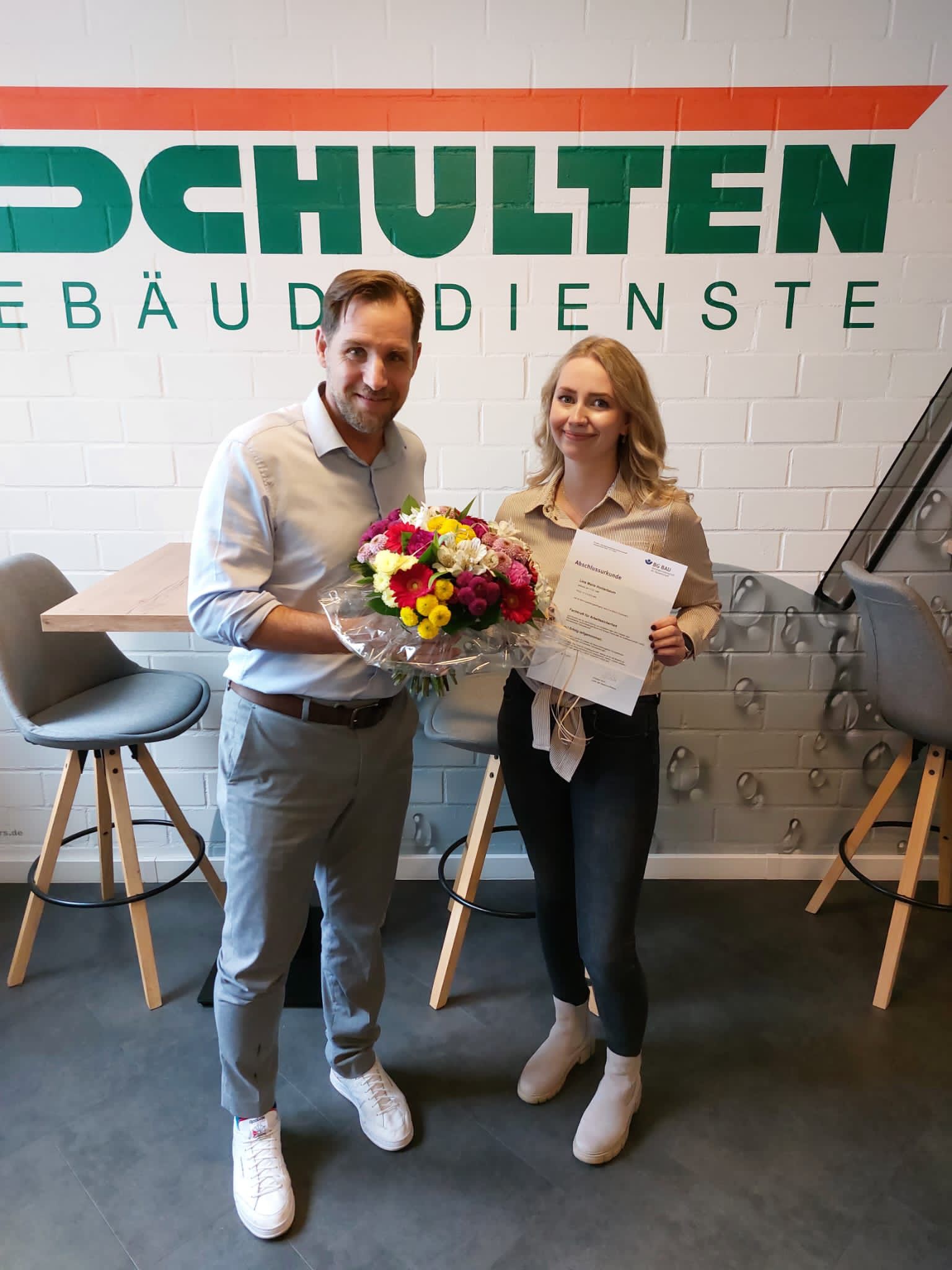 Nov.202023NewsNach einem zweijährigen Lehrgang bei der Berufsgenossenschaft der Bauwirtschaft (BG BAU) hat Lina Holderbaum die Prüfung zur Fachkraft für Arbeitssicherheit bestanden. Herzlichen Glückwunsch, liebe Frau Holderbaum! Category: NewsVon schulten_teamNovember 20, 2023KommentarnavigationZurückVorheriger Beitrag:Mitgliederversammlung FRTNächstesNächster Beitrag:Malwettbewerb 2023Related PostsProduktschulung Dr. SchnellOktober 31, 2025Handerwerker-Woche an der Junior Uni WuppertalOktober 23, 2025Wir sind weiterhin Platin!Oktober 12, 2025PV-AnlageOktober 9, 2025Jubiläumsfeier 2025September 23, 2025Picobello-Tag 2025September 19, 2025